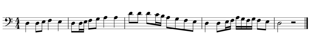 Lorsque vous êtes à l’aise avec cet exercice, vous allez ajouter les notes « de passage », c’est à dire les notes qui vont du Ré au Fa, ou du Fa au La , ou du La au Ré supérieur. Mais en gardant bien les notes importantes sur les temps importants (de toute façon, à ce stade là, vous sentirez certainement quand vous vous trompez!)